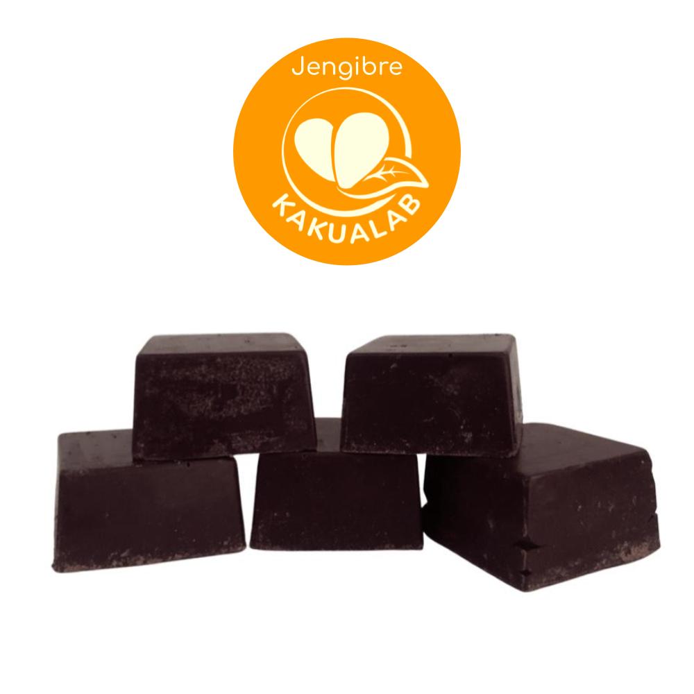 Cubo de cacao 60%, 40% azúcar con extracto esencial de Jengibre.