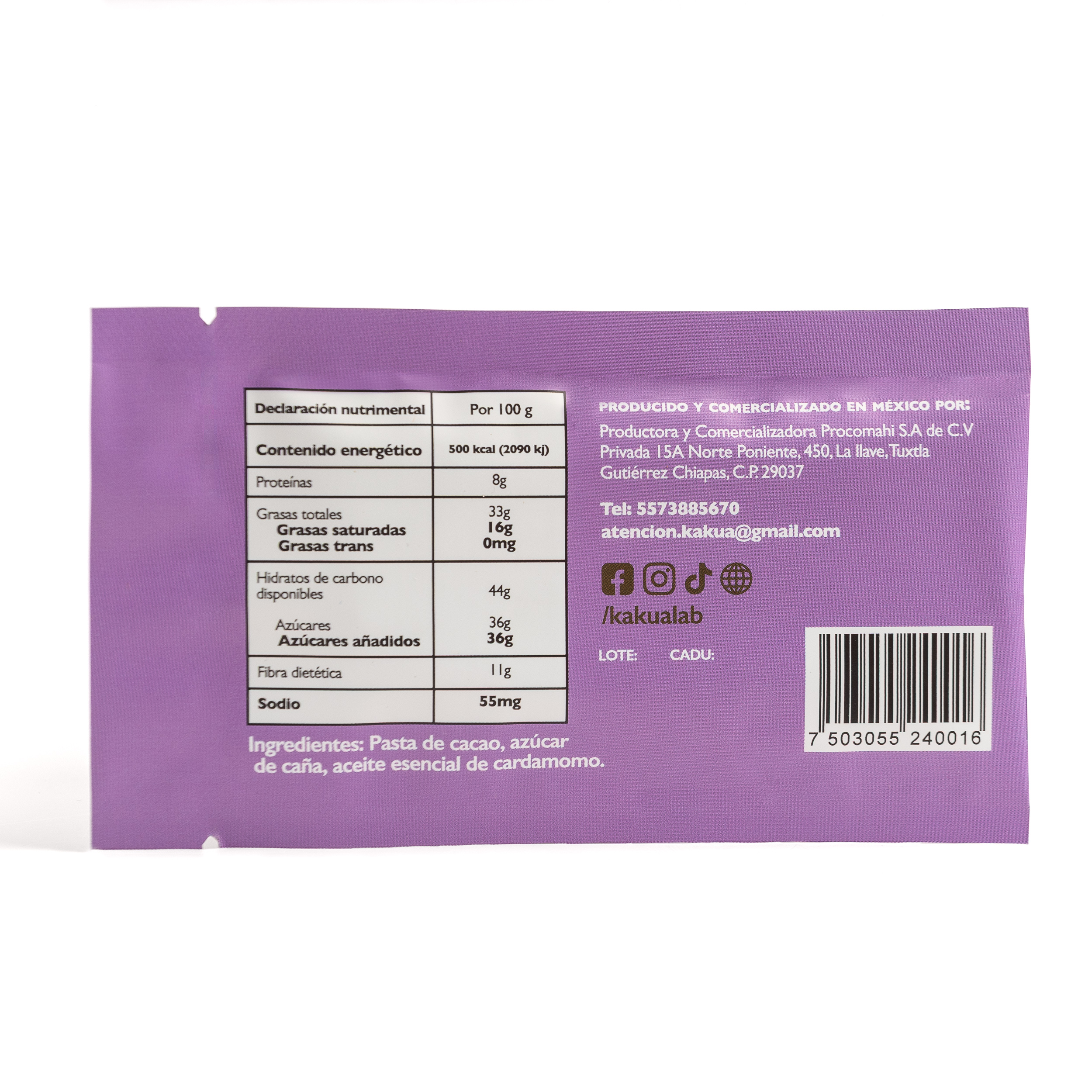 Paquete con 3 barras 60% cacao, 40% azúcar con extracto esencial de cardamomo.